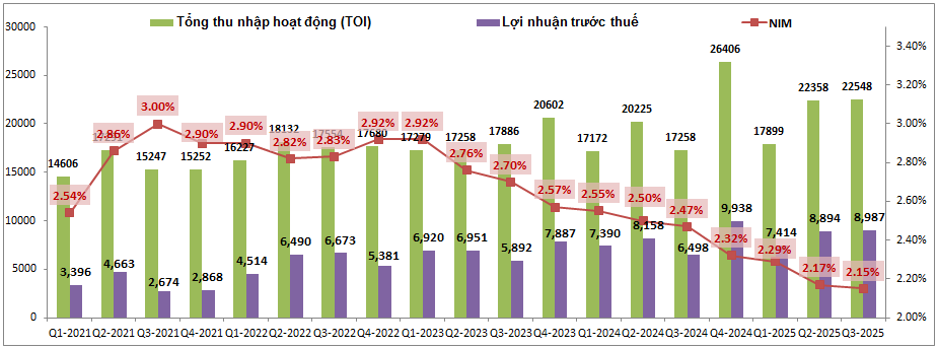 Việc NIM suy giảm chúng tôi cũng đã phân tích khá nhiều trong các bài viết trước, do ngân hàng phải duy trì nền lãi suất cho vay thấp trong suốt hơn 2 năm qua để hỗ trợ kinh tế trong khi các chi phí đã gần như không thể giảm thêm được nữa khiến cho NIM suy giảm dần sau mỗi quý. Hiện trong Q4 lãi suất huy động đã được nâng lên khoảng 1-2% so với mức nền 2 năm qua để giúp các ngân hàng thu hút thêm tiền gửi, điều này cũng phần nào gây áp lực ngắn hạn lên chi phí dù cho lãi suất cho vay cũng được điều chỉnh tương ứng. Vì vậy chúng tôi chưa thấy khả năng nào sẽ giúp NIM của BID tăng trở lại mà chỉ có thể kỳ vọng ngừng giảm và đi ngang trong các quý tới của 2026.