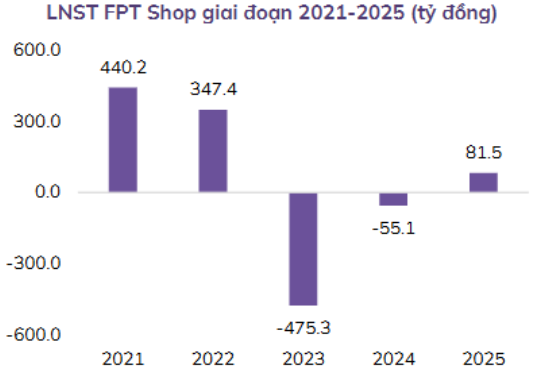 • Bước sang 2025, doanh thu chuỗi FPT Shop đạt 16.809 tỷ đồng (+11% yoy), vẫn tăng trưởng dù đóng cửa thêm 11 cửa hàng trong năm, xuống còn 623 cửa hàng. Việc cắt giảm cửa hàng, cải thiện hoạt động và chuyển đổi mô hình đã phát huy tác dụng khi chi phí SG&A giảm 7% yoy – ghi nhận 1.858 tỷ đồng. LNST của chuỗi cửa hàng ICT này trong năm 2025 đã tăng 137 tỷ đồng – chính thức thoát khỏi chuỗi lỗ lũy kế 2 năm. (Hình 3)