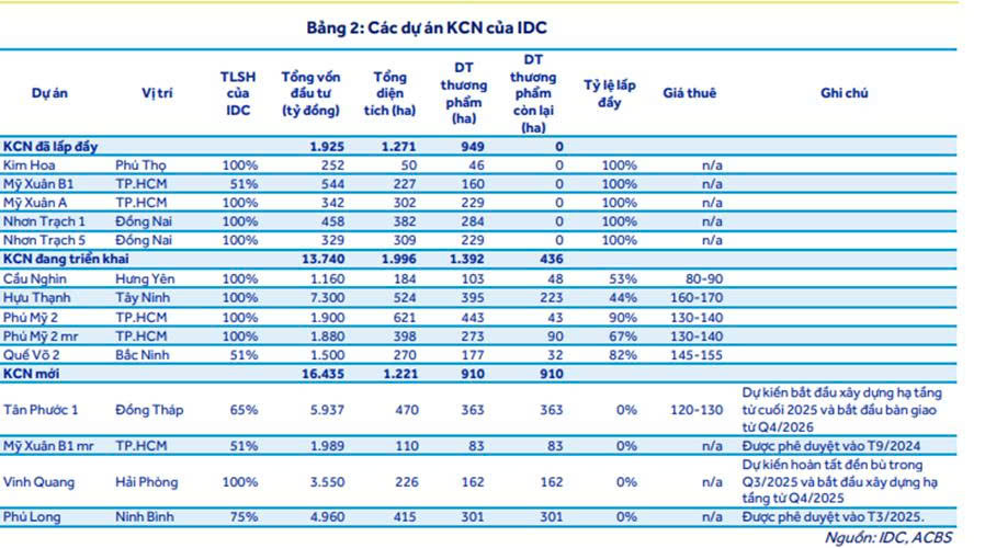 Như vậy về cơ bản KCN của IDC vẫn còn dư địa cho thuê trong trung và dài hạn tại cả miền bắc và miền nam.
