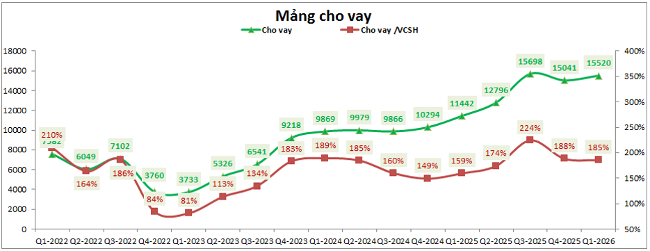 Vì vậy KQKD Q2-2026 trở đi có thể mảng cho vay sẽ tiếp tục tăng thêm và tăng lên mức nền mới cả về tài sản cho vay cũng như KQKD mảng cho vay.