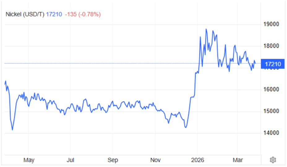 4. Mảng khai thác Nickel: giá Nickel giữ vững đà tăng