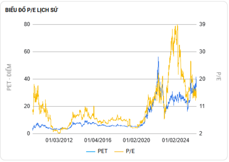 - Kịch bản trung tính, thị trường thanh khoản ổn định 20 – 30k tỷ/phiên, các nhóm cổ phiếu mà PET đầu tư tạo được đáy, giao dịch ổn định: giá cổ phiếu PET sẽ dao động quanh vùng PE 17 – 20 lần, tương đương giá cổ phiếu 35 – 45k/cổ phiếu.