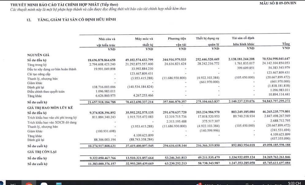 Tổng tài sản cố định của POW được gia tăng gần gấp đôi lên con số 45,7 ngàn tỷ, tuy nhiên khấu hao chỉ tăng vài chục tỷ so với con số khoảng 700 tỷ 1 quý cho thấy cách tiếp cận khấu hao rất chậm nhằm đảm bảo hạch toán lợi nhuận khi nhà máy mới vận hành cuối quý 4 và chưa đem lại tăng trưởng (Doanh thu tại Quý 4 chỉ đạt 8746 tỷ đi ngang so với cùng kỳ cho thấy nhà máy vẫn chưa đóng góp nhiều vào doanh thu)