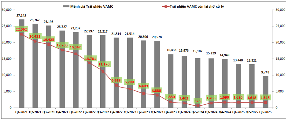Quan điểm cá nhân chúng tôi cho rằng có thể nợ xấu trong Q3 được tăng lên là do STB đã chủ động mua lại trái phiếu VAMC để cơ cấu và xử lý. Trong Q3 mệnh giá trái phiếu VAMC của STB đã giảm 3,578 tỷ đồng từ 13,321 tỷ đồng xuống 9.743 tỷ đồng. Cụ thể như hình 6 dưới.