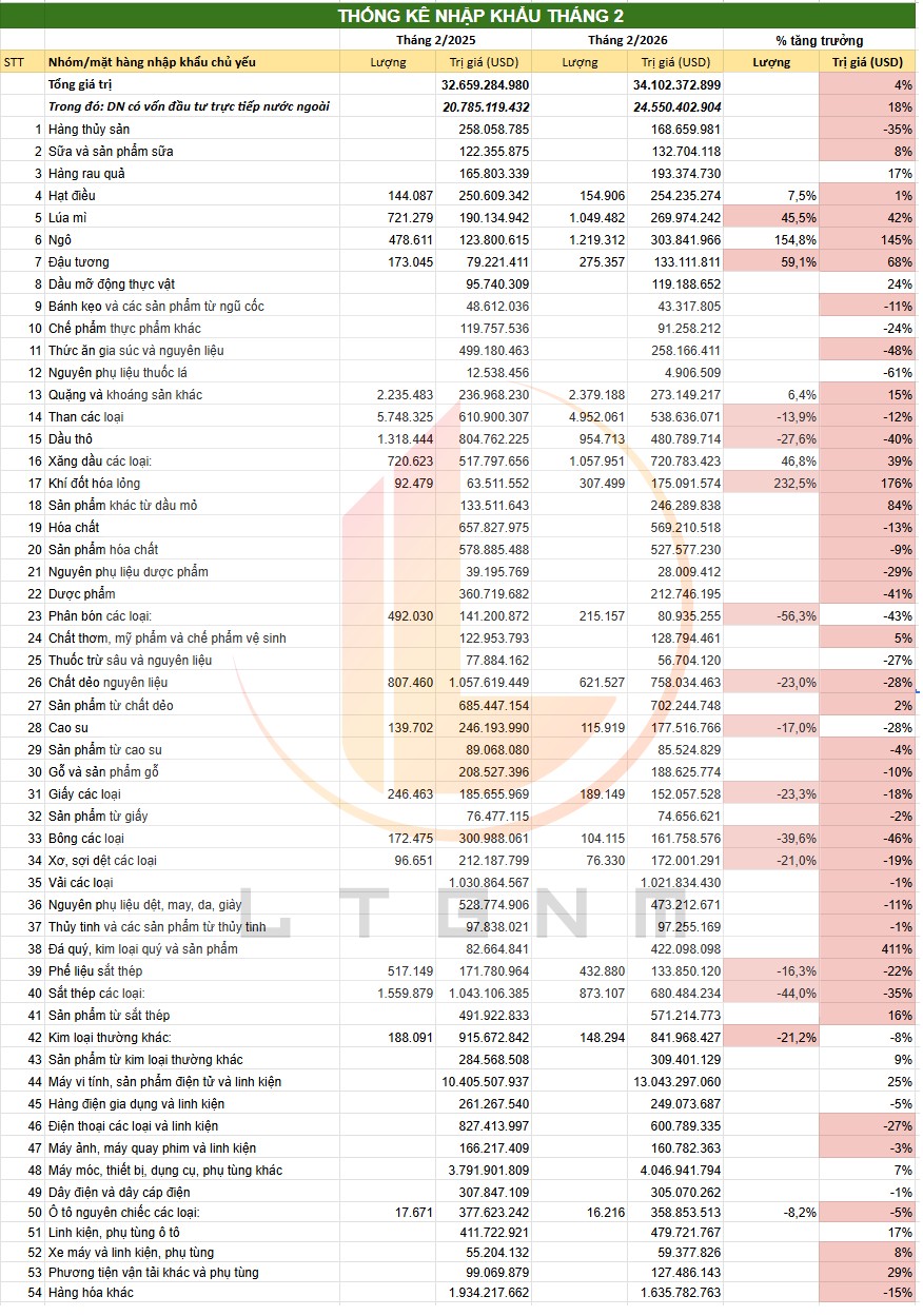 Tình hình xuất nhập khẩu tháng 2.2026