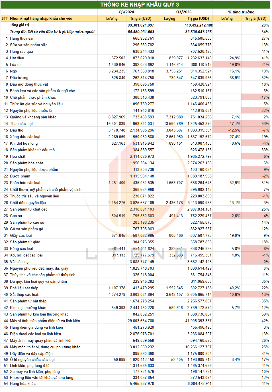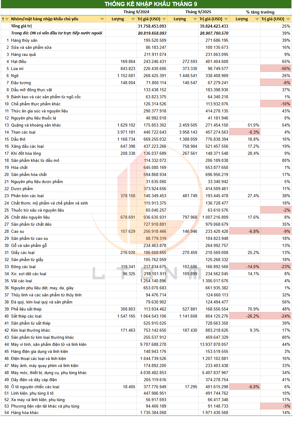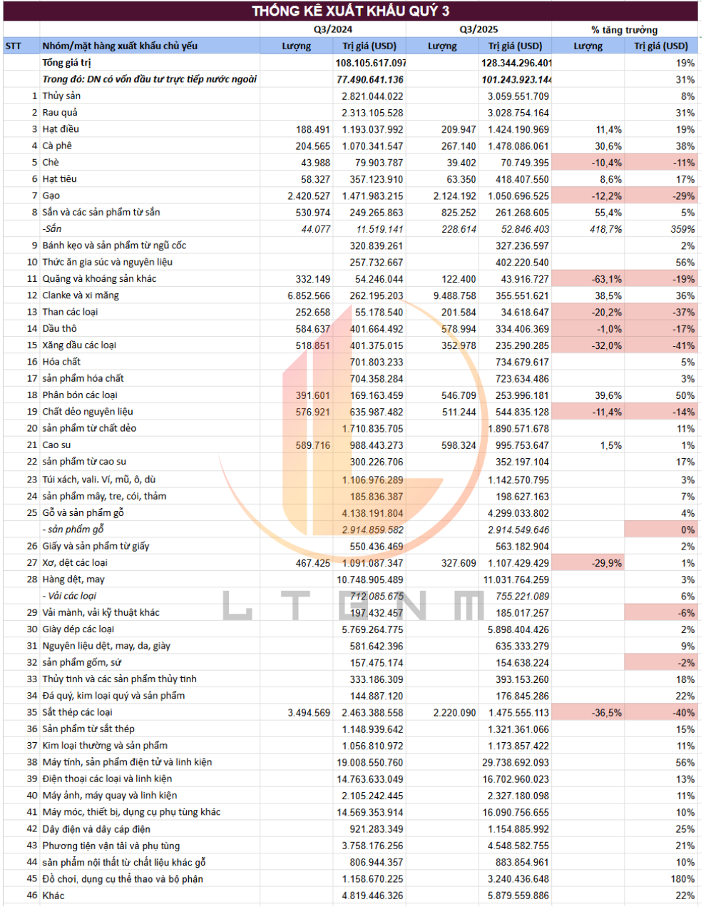 Tình hình xuất nhập khẩu tháng 9 và quý 3/2025