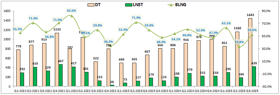 Về cơ bản báo cáo tài chính Q3-2025 khá sát với phân tích của chúng tôi trong quý trước khi thị trường chung tích cực sẽ hỗ trợ cho KQKD của công ty. Dưới đây là một số điểm nhấn từ các mảng kinh doanh chính của công ty: