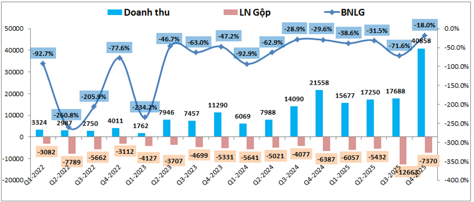 - Biên lợi nhuận gộp dù vẫn ở mức âm nhưng nhìn trung bình thì sau mỗi năm biên lợi nhuận gộp đã có sự cải thiện khá rõ nét khie 2022 là -150%, 2023 là -62.8%, 2024 là -42.5% và sang tới 2025 chỉ còn là -34.4%. Rõ ràng vẫn còn một khoảng khá xa để VIC có thể kỳ vọng đạt đến ngưỡng hòa vốn nhưng với việc dần cải thiện sau mỗi năm sẽ là động lực giúp VIC có thể đạt hòa vốn trong tương lai sau giai đoạn mở rộng thị phần mạnh mẽ trong 1-2 năm tới.