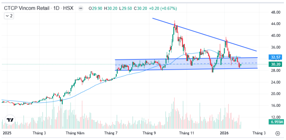 Trên thực tế, mặc dù kết quả kinh doanh và giá cổ phiếu của Vingroup nói chung, VRE nói riêng không hoàn toàn đồng pha, những câu chuyện của 2026 chưa có nhiều điểm sáng cũng sẽ là một nốt trầm cho mã cổ phiếu này. Giai đoạn sôi động nhất của nhóm cổ phiếu này nhiều khả năng đã đi qua, nhà đầu tư có ý định “bắt đáy” VRE cần thận trọng trong quyết định đầu tư của mình.